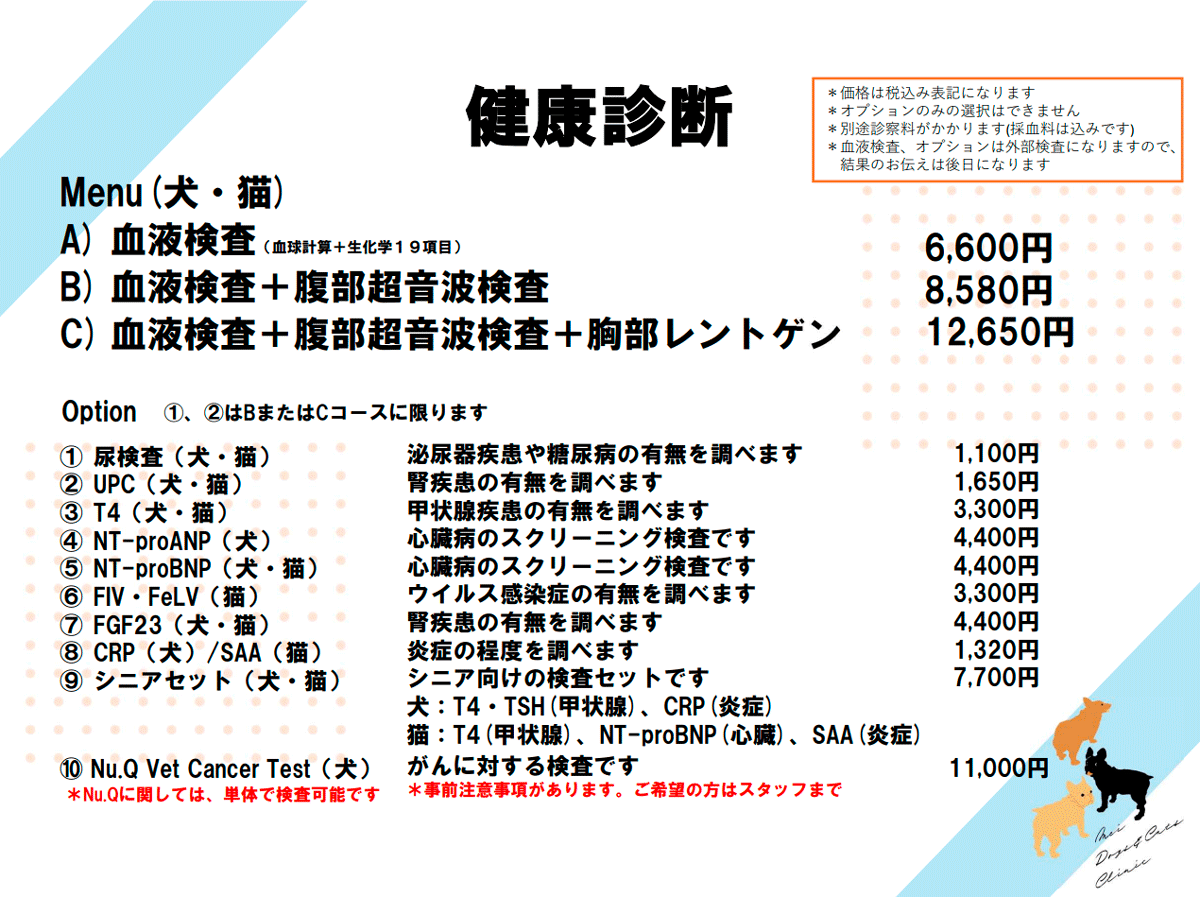 犬:キャリーに入れていただくか、リードを付けてご来院ください